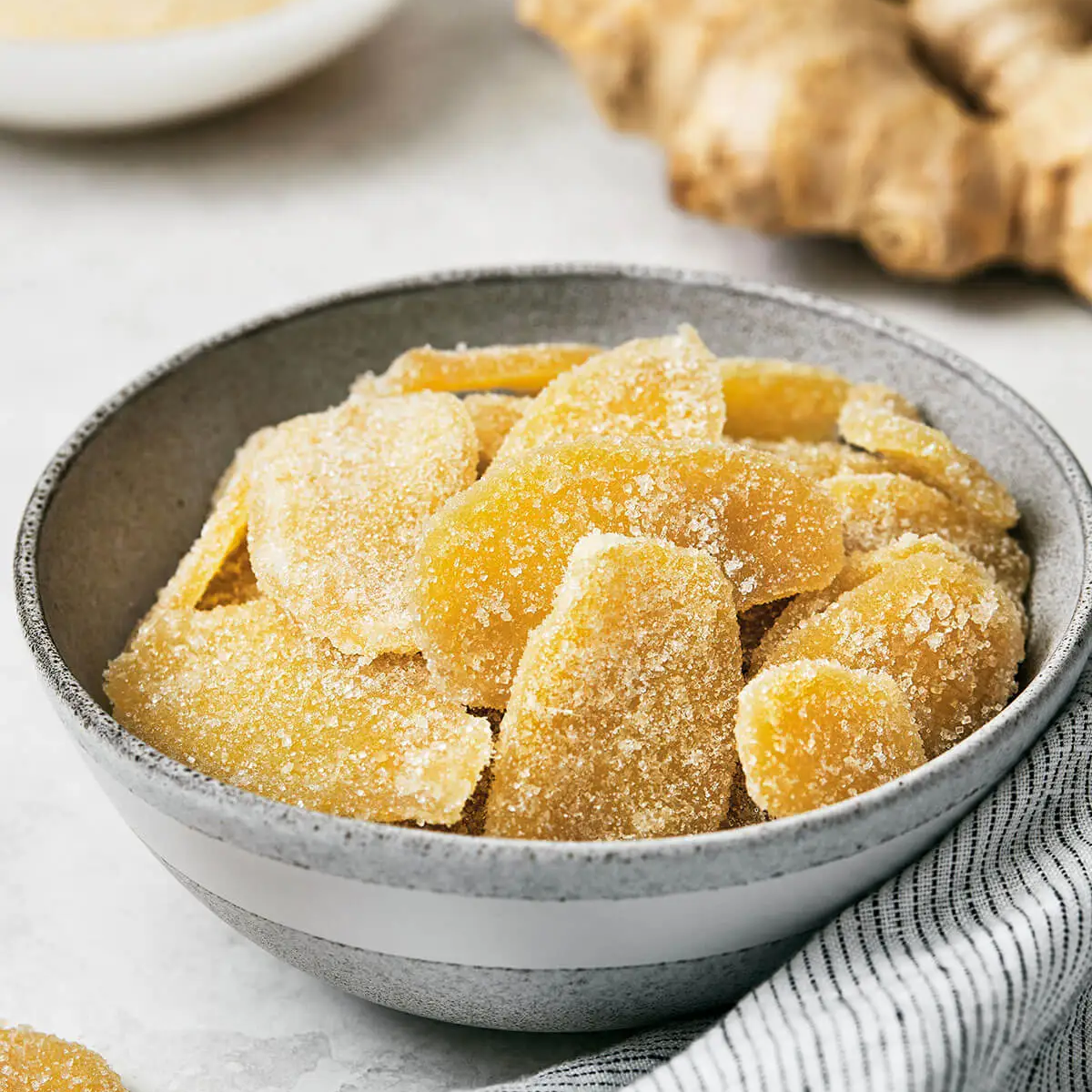 Sweet and tangy organic preserved ginger, ideal for baking and cooking.